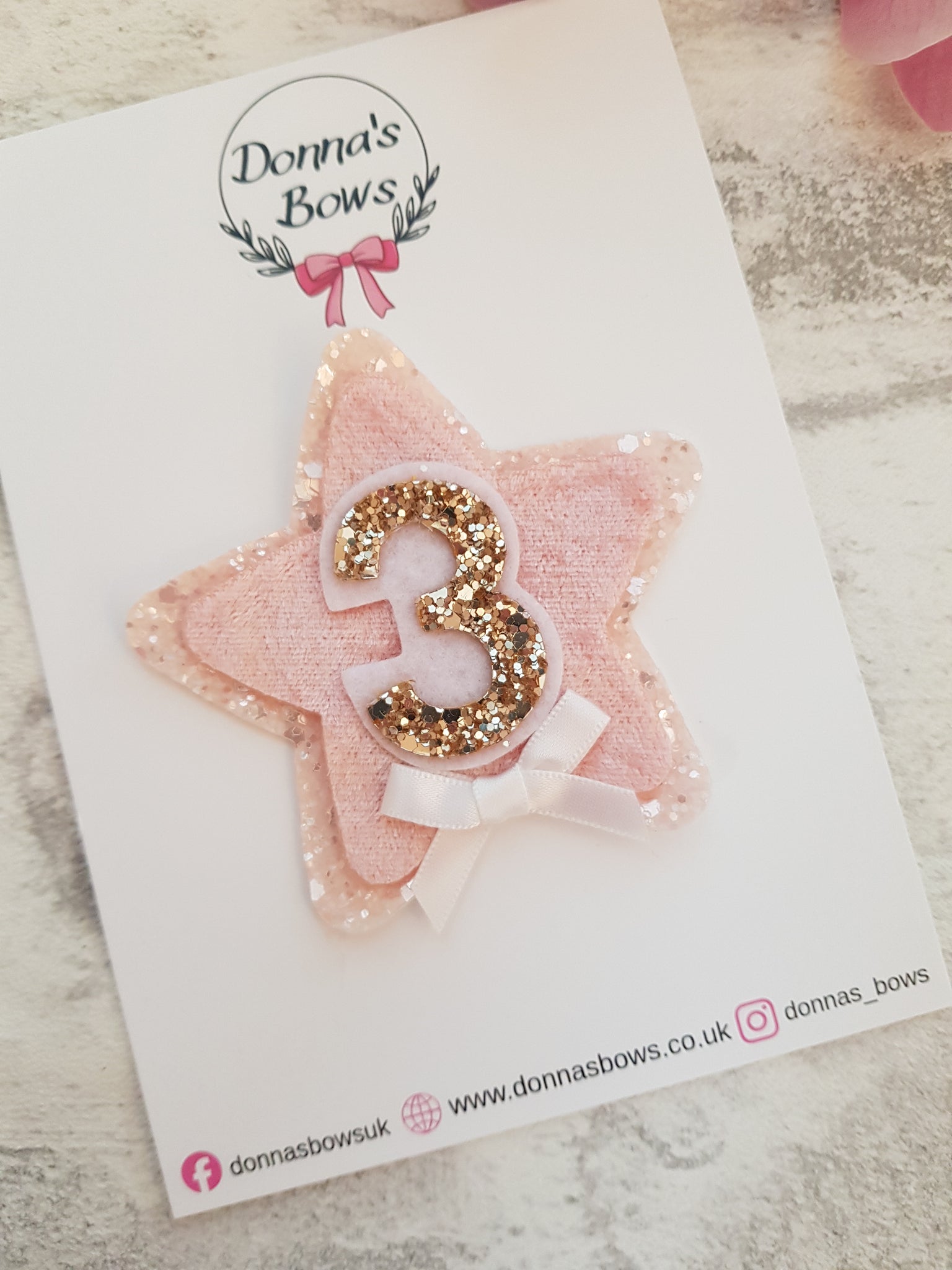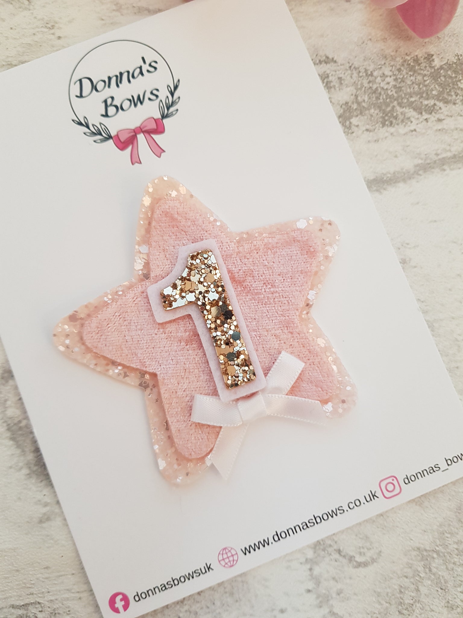 Pattern placement on glitter or cotton fabric might vary slightly between bows