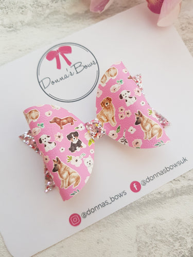 Grey Pink Flower Bow