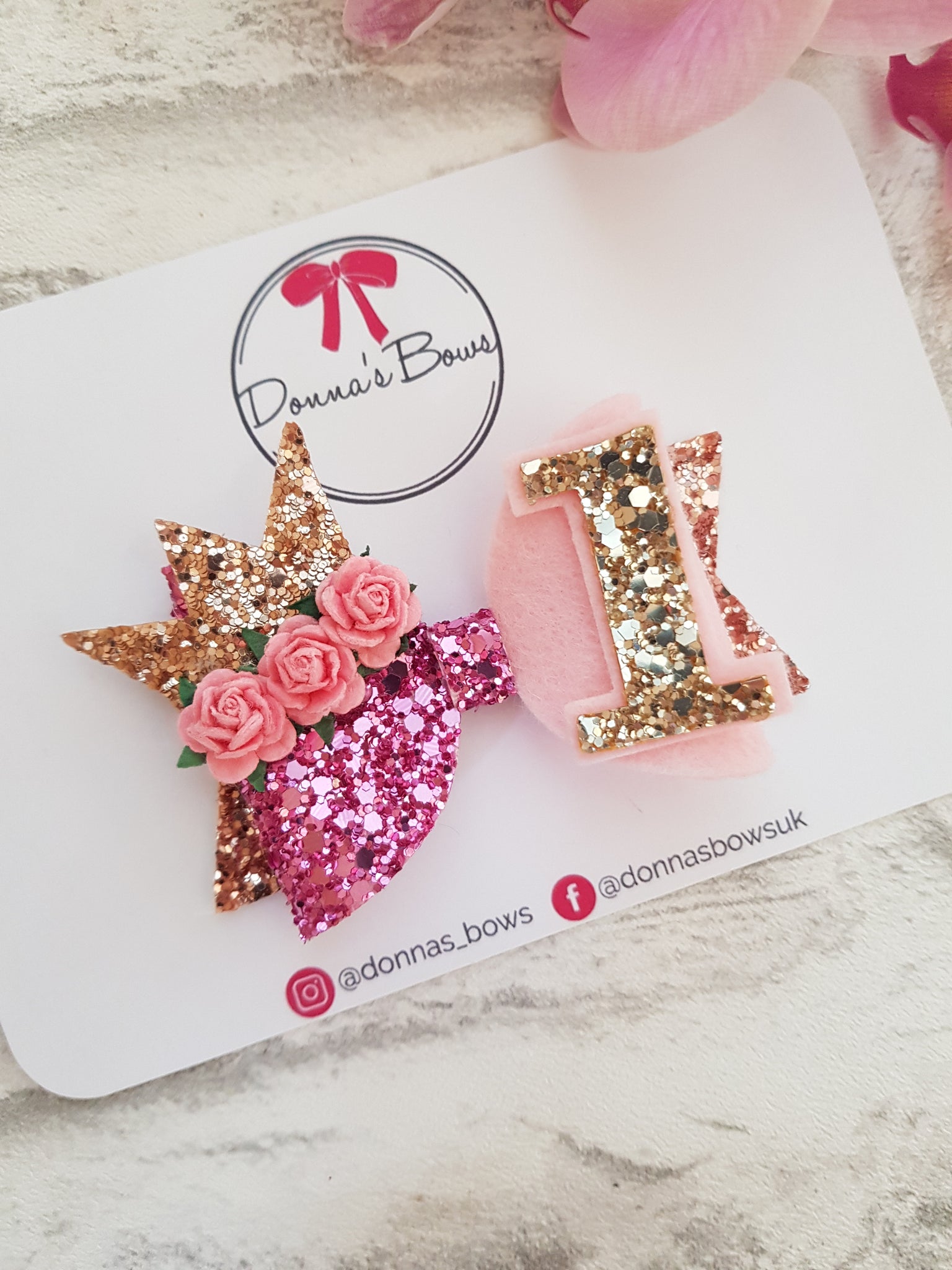 Made using high quality chunky glitter fabric, 100% wool felt and miniature paper roses.