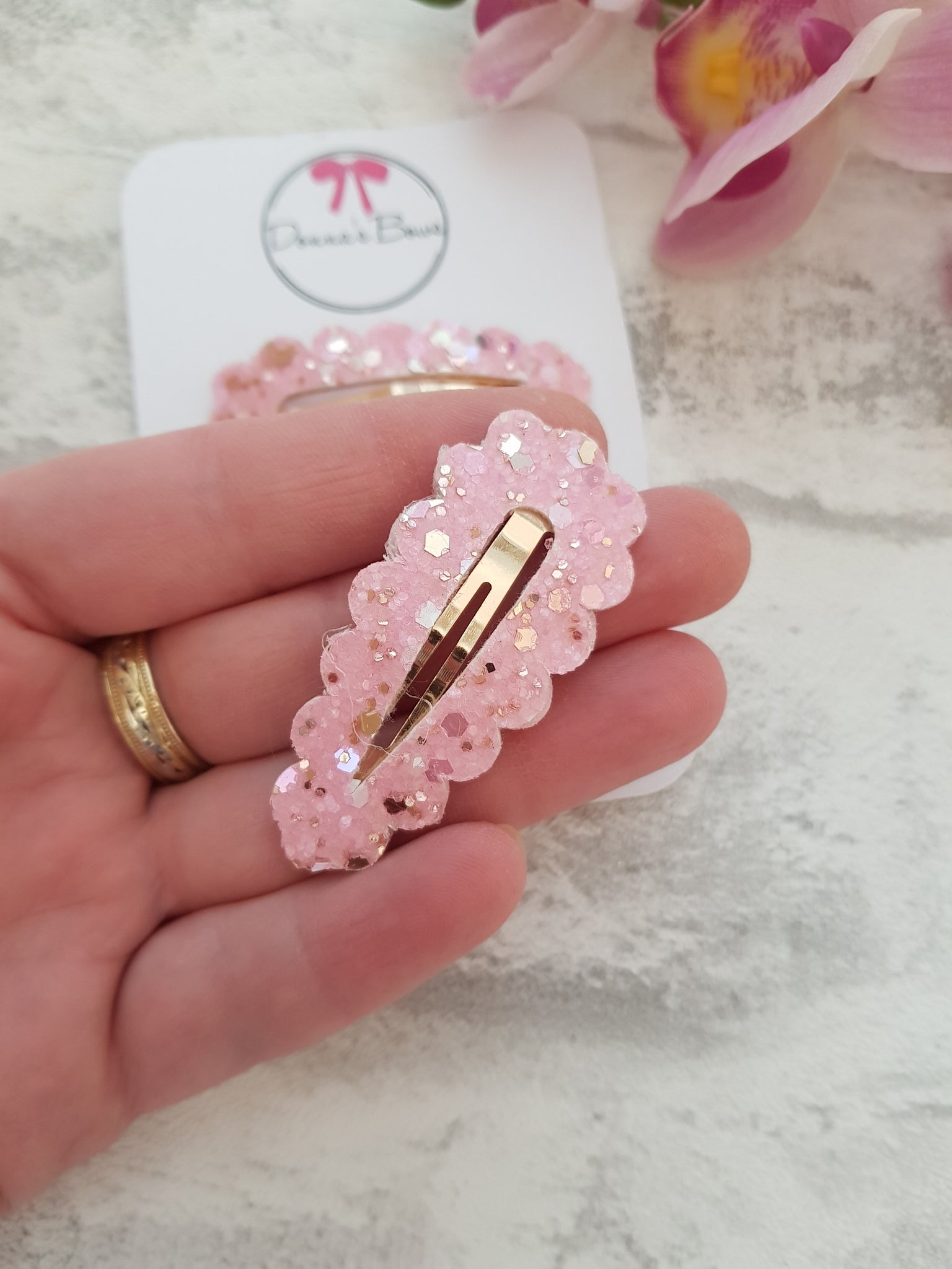 Set of 2 glitter snap clips.