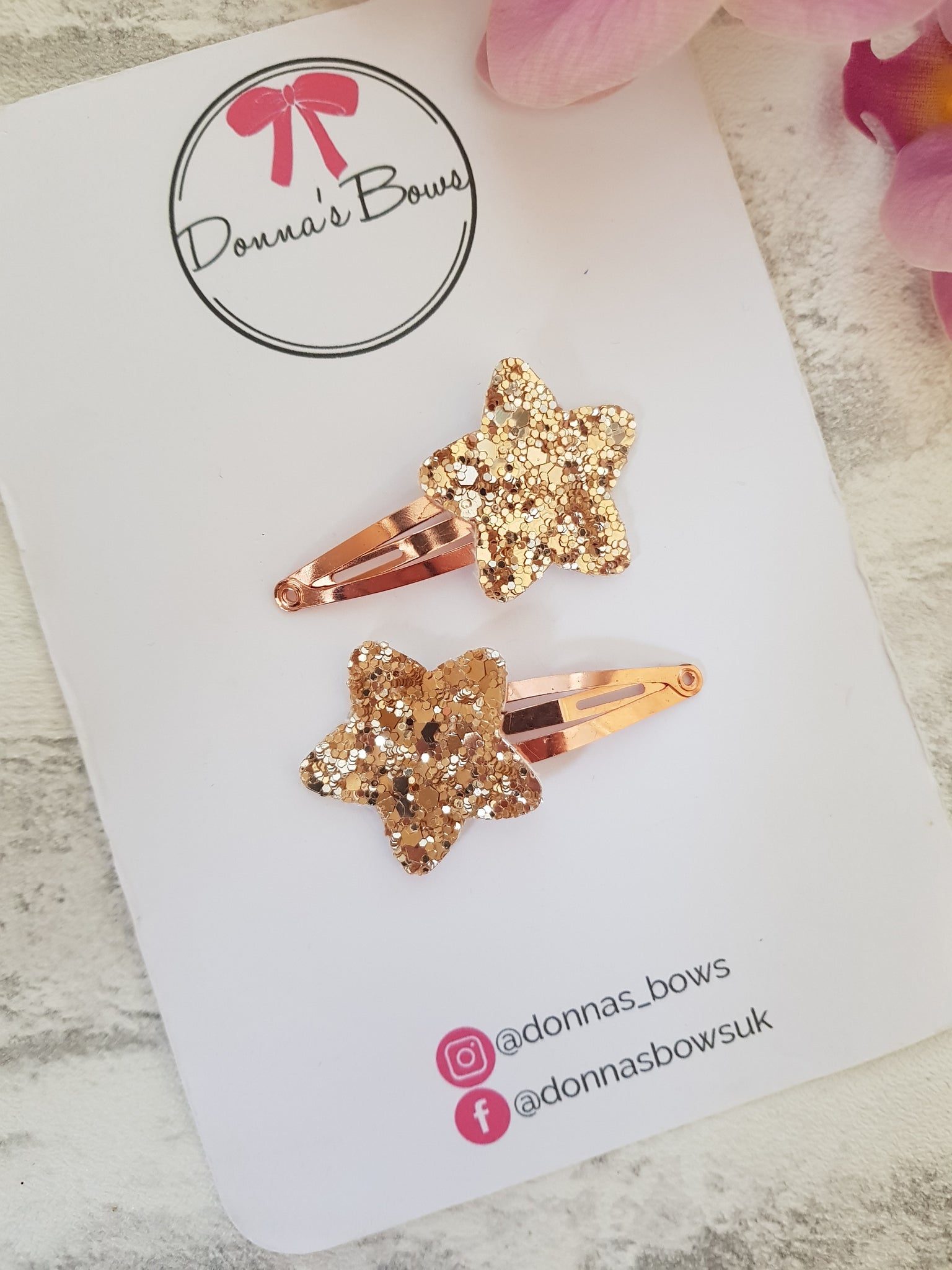 The star measures approx. 3cm in width and the rose gold clips are 4cm.
