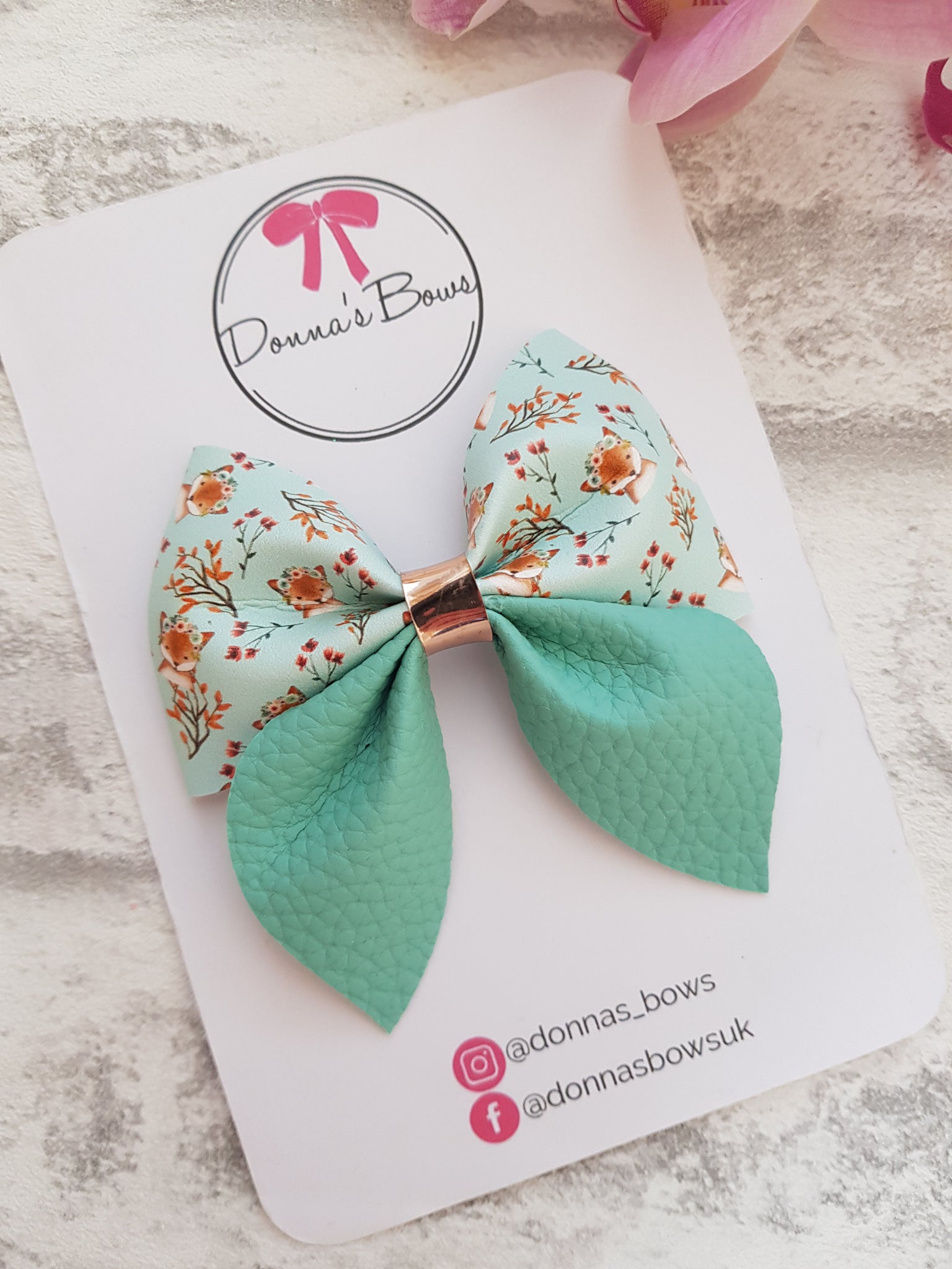 Boho fox themed hairbow made from faux leather.