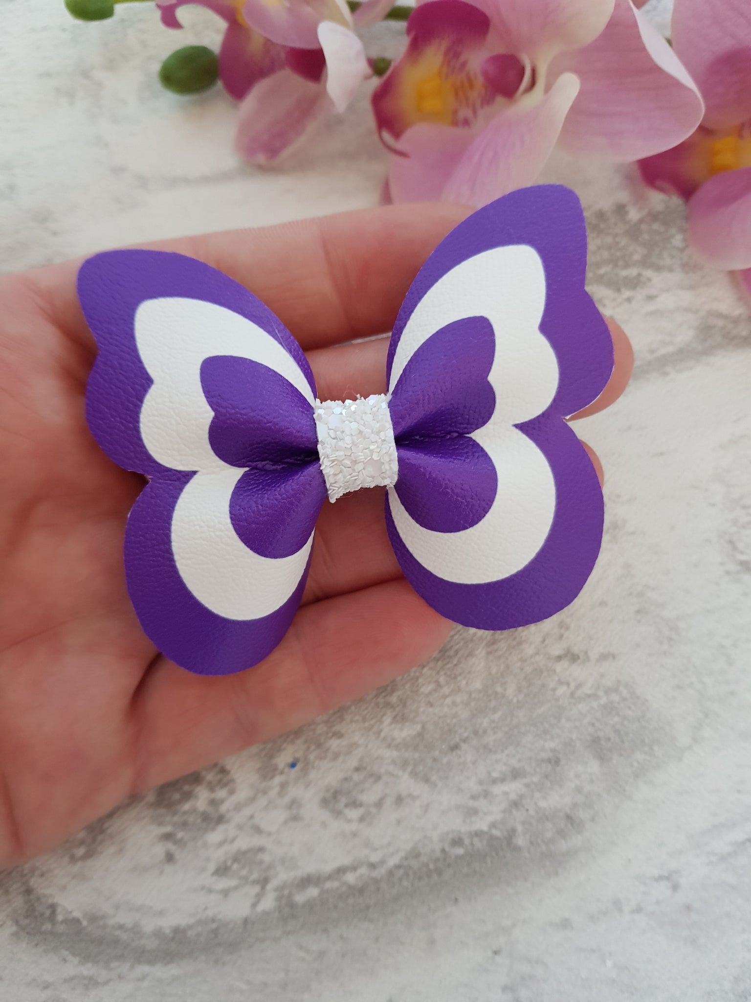 Faux leather butterfly hair clip.